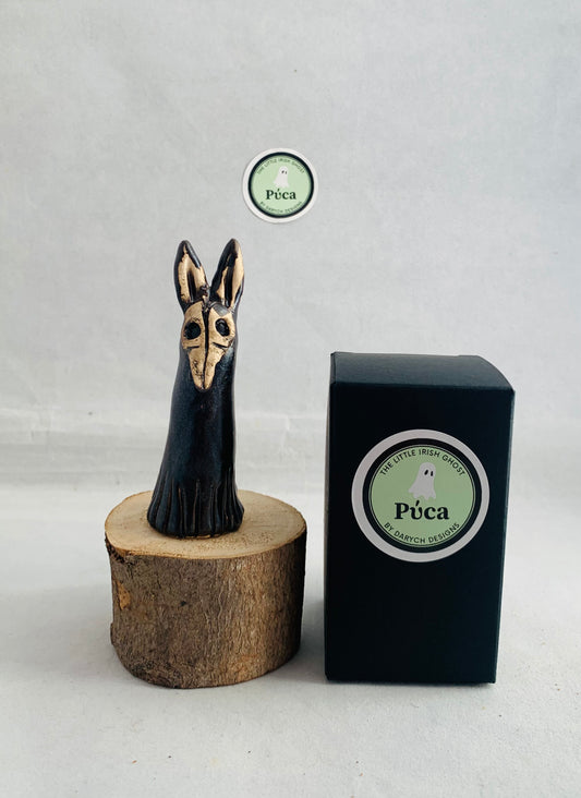 The Púca (Irish for spirit / ghost; plural Púcaí) is a creature of our Celtic folklore. Each one is handmade out of clay (no moulds are used), hand-painted and fired twice in a kiln making them totally unique. Each measures between 6cm - 8cm approx.