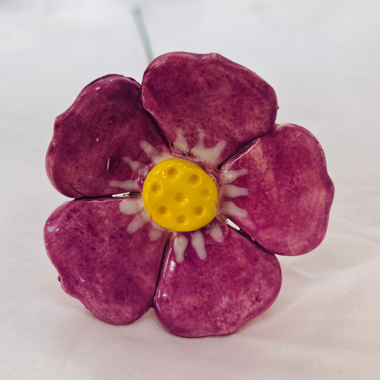 Ceramic 5 Petal Poppy Style Flower in Purple.
